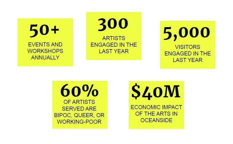 The Hill Street Country Club’s mission is to extend art beyond gallery walls to create a culture where artists and community can thrive together in North San Diego County. We see hospitality as a natural extension of the care we’ve offered to the arts community over the last 13 years. Through the Art Hotel Project, we aim to create an arts ecosystem and creative economy by employing artists and connecting tourism to the local arts community. This will create a hospitality experience rooted in the unique coastal identity of Oceanside that benefits residents and visitors alike. The hotel will also secure a permanent home for our organization that has been functioning on a pop-up basis after we lost our gallery space on Coast Highway when the building was sold in 2025.