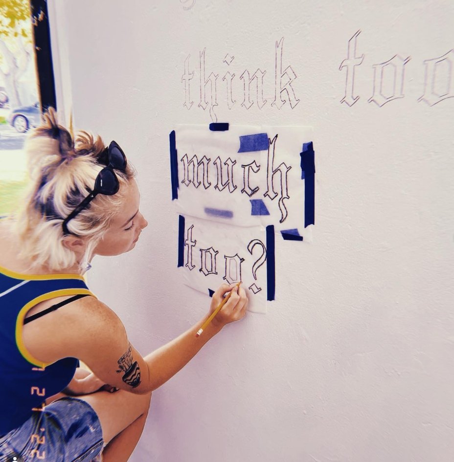 Lyon's work is informed by her own experiences with mental health, and she uses her art as both a tool of healing and a way to normalize the societal conversations around mental health. Lyon also uses sustainable art practices in her art, including the use of recycled canvases and other materials, including donated paint.